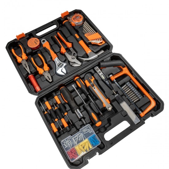 • Bu temel alet çantası ile başka alet aramadan küçük onarımlar yapabilirsiniz. Ev alet çantasında testere, çekiç, kurbağacık, kontrol kalemi, izole bant, şerit metre, tornavida, pense, vida vb. bulunur. Küçük el işleri için günlük olarak en sık kullanılan aletleri içerir. Vida değiştirme, somun sıkma, sıyırma, kavrama, sabitleme, döndürme, bükme ve diğer küçük temel onarımlar gibi ev onarım ve bakım işleri.