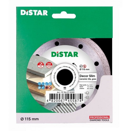 DISTAR DECOR SLIM 5D Elmas testere , her tür karo için evrensel bir kesme aleti haline geldi. Farklı karo türleri üzerinde yapılan testlerden sonra, porselen, yer ve duvar karolarının işlenmesi için en uygun olanındandır.