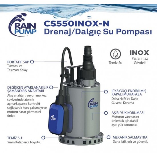 Rainpump CS550INOX-N Paslanmaz Gövdeli Drenaj Dalgıç Pompa | Nalburdavar