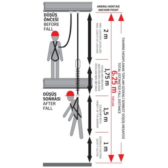 KARAM Ka 341 Çift Kollu K4 Kancalı Şok Emicili Karabinalı Lanyard