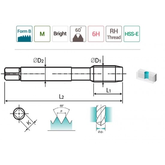 YG-1 Düz Kanal Makina Klavuzu M3 x 0.5 mm Teknik Özellikleri