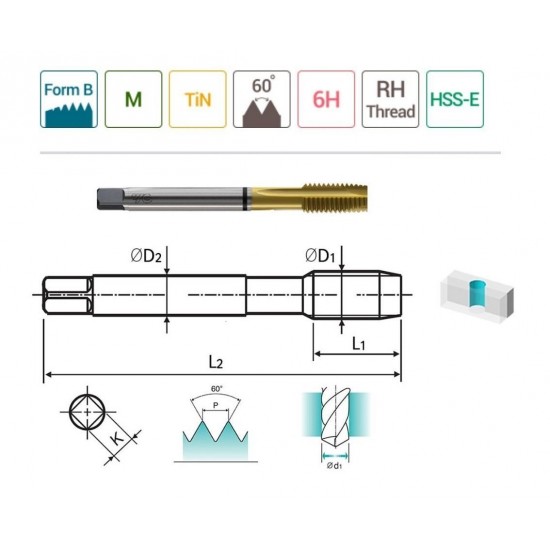 YG-1 Düz Kanal Makina Klavuzu TIN Kaplı M10 x 1.50 mm Teknik Özellikleri