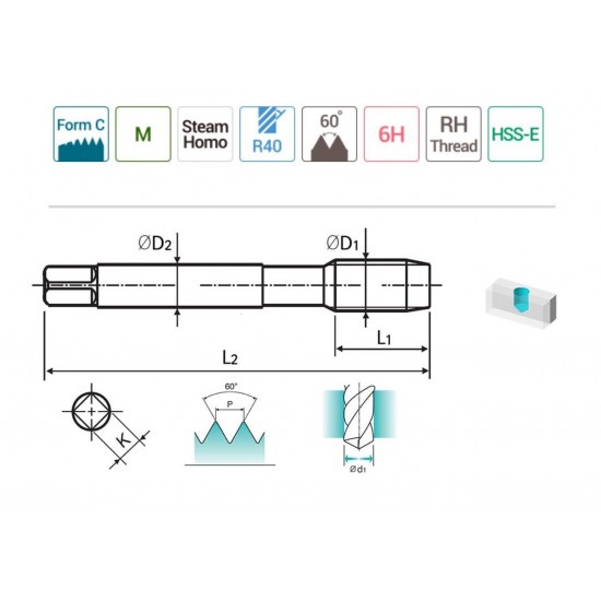 YG-1 Helis Makina Klavuzu M5 x 0.80 mm Teknik Özellikleri