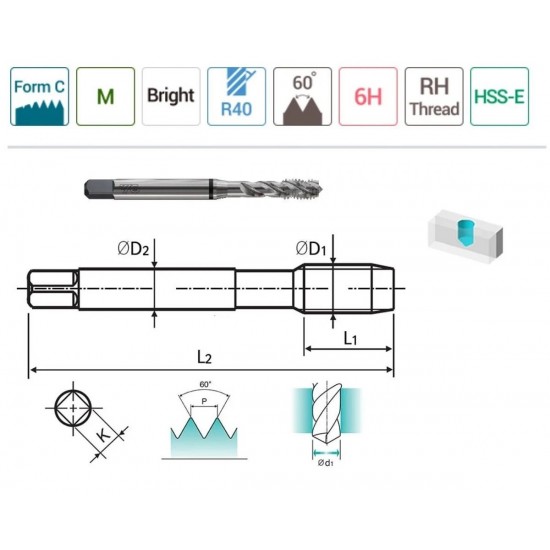 YG-1 Helis Makina Klavuzu M5 x 0.80 mm Teknik Özellikleri