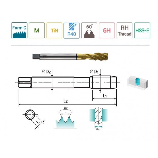YG-1 Helis Makina Klavuzu TIN Kaplı M12 x 1.75 mm Teknik Özellikleri